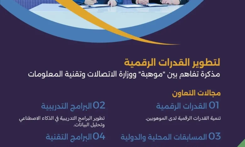 “موهبة” ووزارة الاتصالات وتقنية المعلومات توقعان مذكرة تفاهم لتعزيز القدرات الرقمية للموهوبين
