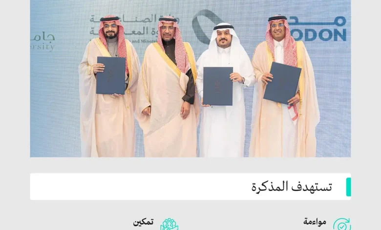 الأكاديمية الوطنية للصناعة تُبرم مذكرة تفاهم مع “مدن” وجامعة المجمعة لتنمية القدرات البشرية في قطاعي الصناعة والتعدين