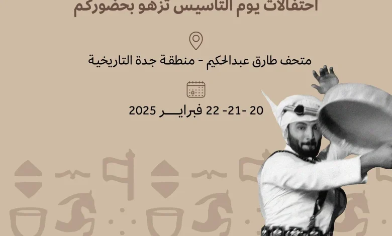 ينظم متحف طارق عبدالحكيم في جدة التاريخية فعاليات يوم التأسيس، خلال المدة من 20 إلى 22 فبراير 2025، تحت إشراف هيئة المتاحف، احتفاءً بمناسبة يوم التأسيس.