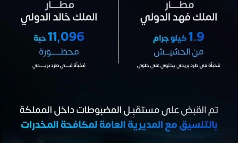 “الزكاة والضريبة والجمارك” تُحبط محاولتي تهريب 1.9 كيلوجرام من الحشيش وأكثر من 11 ألف حبة محظورة