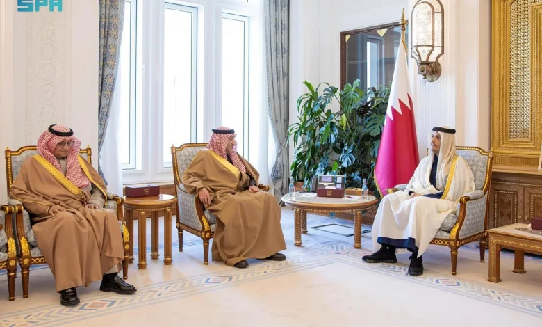 حضر الاستقبال، صاحب السمو الأمير منصور بن خالد بن فرحان سفير خادم الحرمين الشريفين لدى دولة قطر.