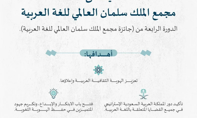 مجمع الملك سلمان العالمي للغة العربية يعلن فتح باب التسجيل في جائزته السنوية العالمية بدورتها الرابعة