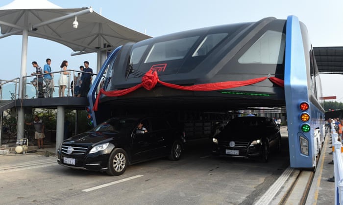 نجحت الصين في اطلاق أول أتوبيس يمر من فوق السيارات في الشوارع، في أول تجربة له في مدينة قينهواندجداو في مقاطعة هيبي، وذلك بهدف التغلب على ازمة الزحام المروري.