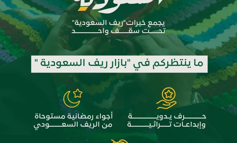 تنطلق يوم الخميس المقبل فعاليات “بازار ريف”، الذي ينظمه برنامج التنمية الريفية الزراعية المستدامة “ريف السعودية” في واجهة روشن بالرياض؛ لدعم وتحفيز الأسر الريفية المنتجة، من خلال تسليط الضوء على منتجاتها الزراعية المحلية، والحرف التقليدية التي تحكي عبرها، أصالة التراث السعودي، وإبداع الأسر في عكس التنوع الثقافي الفريد لكل منطقة.