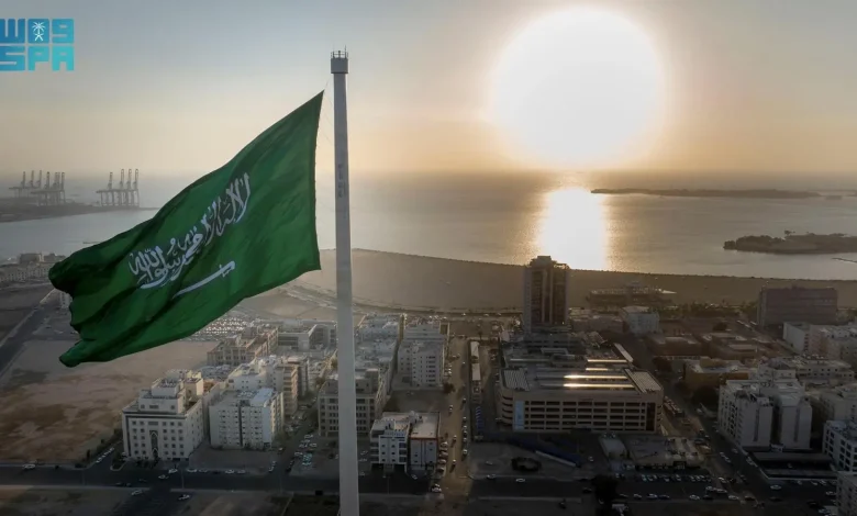 “راية التوحيد” تُرفرف عاليًا بأطول سارية في العالم احتفاءً بـ”يوم العلم”