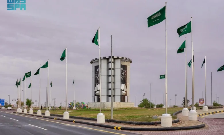 رفحاء تتزين بالأخضر احتفاءً بيوم العلم