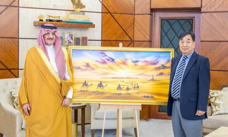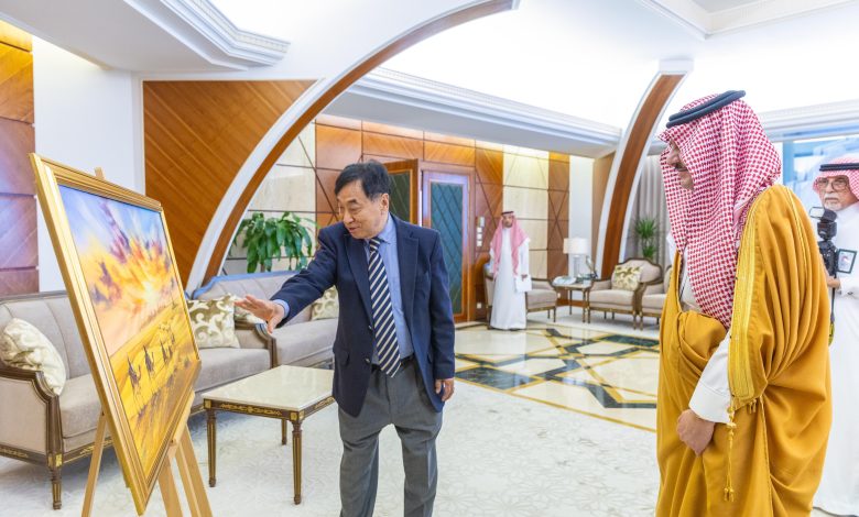 وفي ختام اللقاء، قدم رئيس المجلس هدية لسموه عبارة عن لوحة فنية من أعمال الرسام الكوري (سيونج باكيم) الذي يقيم في المملكة منذ 40 عاماً.