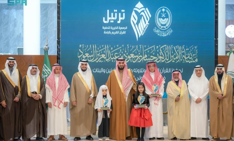 برعاية أمير الباحة.. وكيل الإمارة يكرّم 22 فائزًا وفائزة في مسابقة القرآن الكريم التابعة لجمعية “ترتيل”