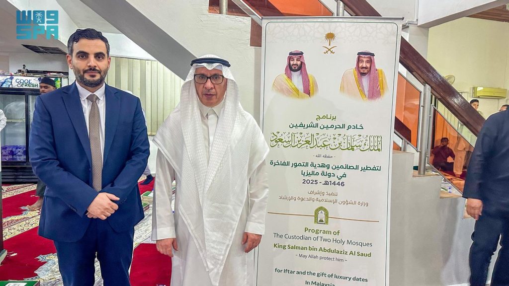 أقامت وزارة الشؤون الإسلامية والدعوة والإرشاد، ممثلة بالملحقية الدينية بسفارة المملكة في ماليزيا اليوم، مأدبة لتفطير الصائمين ضمن برنامج خادم الحرمين الشريفين لتفطير الصائمين في مسجد الهلالية بحي جومباك بالعاصمة كوالالمبور، بحضور سفير خادم الحرمين الشريفين لدى ماليزيا مساعد بن إبراهيم السليم، وعدد من الشخصيات الإسلامية والمسؤولين.