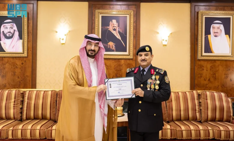 سمو وزير الحرس الوطني يقلّد رئيس الجهاز العسكري المكلّف وسام المنظمة الدولية للحماية المدنية بمرتبة “فارس”