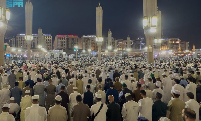 جموع المصلين يشهدون ختم القرآن الكريم بالمسجد النبوي