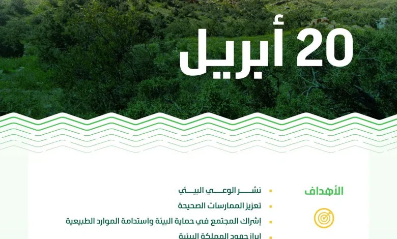 المملكة تستعدّ لتدشين فعاليات أسبوع البيئة تحت شعار ” بيئتنا كنز” 20 أبريل الحالي