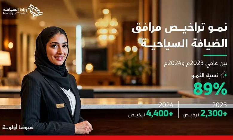 وزارة السياحة: عدد التراخيص لمرافق الضيافة السياحية تسجل نموًا بنسبة 89% بنهاية عام 2024 في مختلف مناطق المملكة
