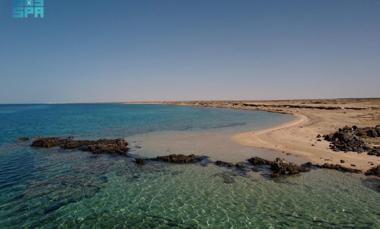 شاطئ الحرة الشمالية في أملج.. لوحة طبيعية تجمع بين الرمال البيضاء والصخور البركانية