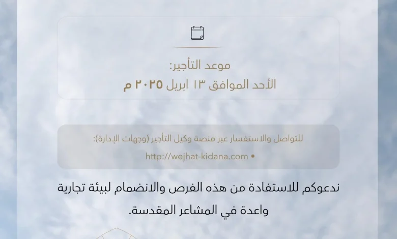 ودعت الشركة المستثمرين للاستفادة من هذه الفرص والانضمام لبيئة تجارية واعدة في المشاعر المقدسة، مفيدةً أن الاستفسار والتواصل سيكون متاحًا عبر منصة وكيل التأجير (وجهات الإدارة).