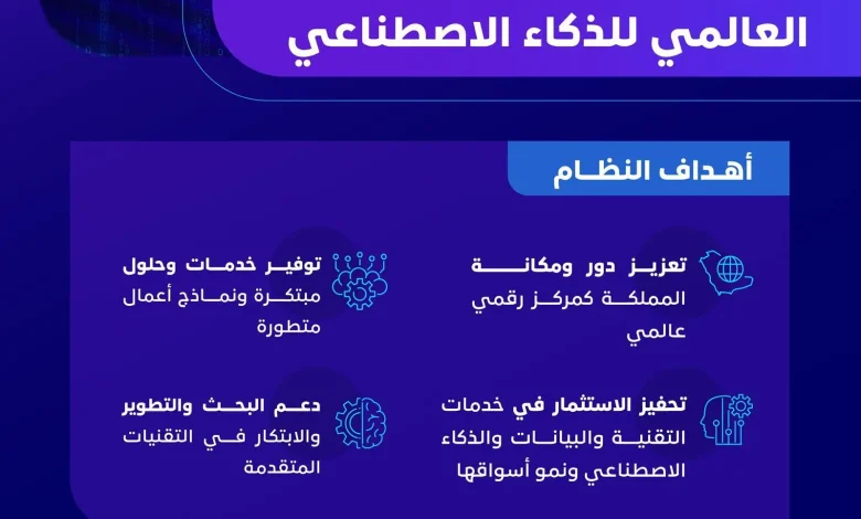 وأوضحت الهيئة أن النظام يهدف إلى تعزيز دور ومكانة المملكة كمركز رقمي عالمي وكقائد فعال ومؤثر في الاقتصاد الرقمي على مستوى العالم، ودعم الابتكار وريادة الأعمال والبحث والتطوير في التقنيات المتقدمة الممكنة لمختلف الحلول الرقمية، وتمكين إنشاء مراكز بيانات ذات سيادة وامتيازات تدعم استمرارية الخدمات والسيادة على البيانات خارج الحدود، وتمكين الاستثمار في خدمات التقنية والبيانات والذكاء الاصطناعي ونمو أسواقها، بالإضافة إلى تعزيز البينة التحتية الرقمية المستدامة.