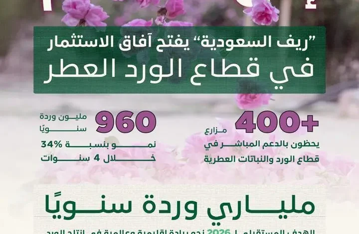 “ريف السعودية” يدعم أكثر من 400 مزارع ويستهدف إنتاج ملياري وردة سنويًا بحلول 2026