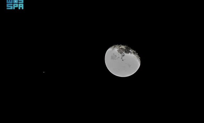 رُصد مساء أمس، اقتران مميز بين القمر ونجم “قلب العقرب” في سماء منطقة الحدود الشمالية، في مشهد فلكي بديع.