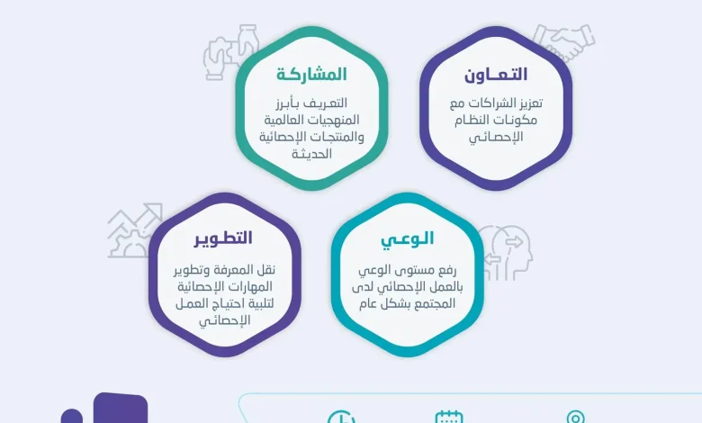 ويسلط المنتدى الضوء على عددٍ من المحاور ضمن 5 جلسات، حيث ستناقش الجلسة الأولى “دور الإحصاء فـي رسم السياسات واتخاذ القرار”، كما تسلط الجلسة الثانية الضوء على “المنهجيات والممارسات الإحصائية الدولية”، وتليها الجلسة الثالثة حول الابتكار والتطوير في الأساليب الإحصائية، وسيتحدث المشاركون في الجلسة الرابعة حول “دور القطاع الخـاص في دعم وإنتاج البيانات الإحصائية” أما الجلسة الأخيرة فستناقش “التكامل بين المؤسسات الإحصائية ومستخدمي البيانات”.
