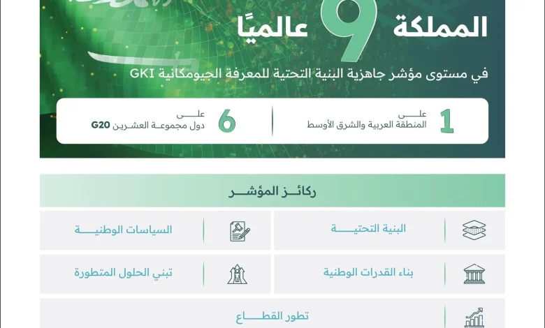 المملكة تتصدر إقليميًّا وتحقق المرتبة 9 عالميًا والسادسة على G20 في المجال الجيومكاني