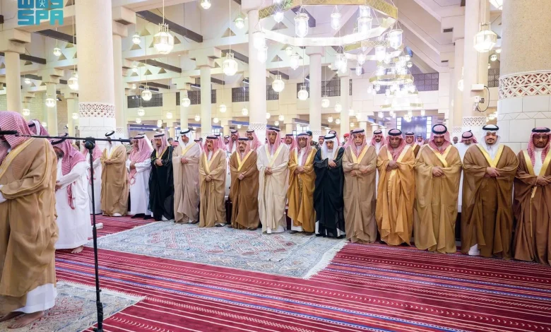 أمير منطقة الرياض ونائبه يؤديان صلاة الميت على صاحب السمو الأمير ناصر بن فهد بن عبدالله بن سعود بن فرحان آل سعود