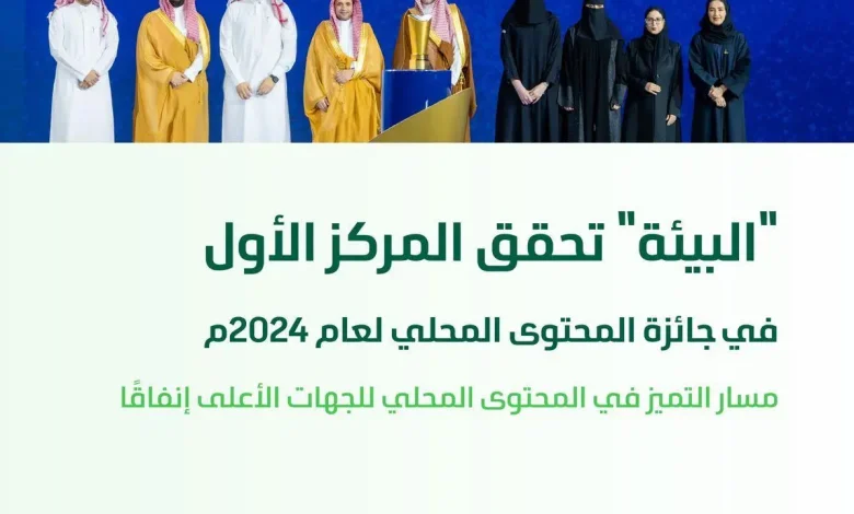 “البيئة” تحقق المركز الأول لجائزة التميز في المحتوى المحلي للجهات الأعلى إنفاقًا