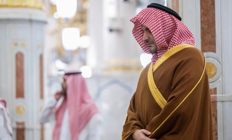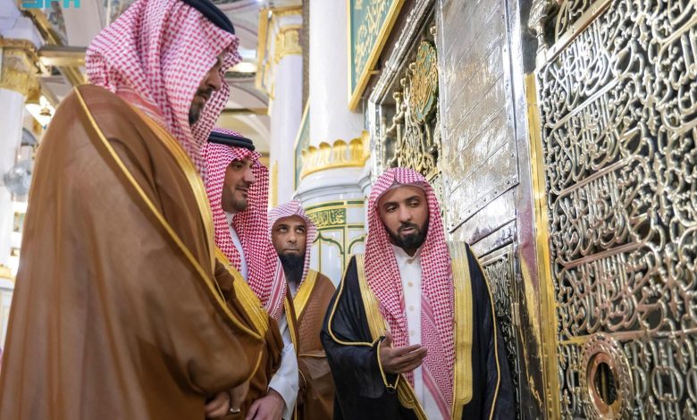 الأمير عبدالعزيز بن سعود يزور المسجد النبوي ويؤدي الصلاة في الروضة الشريفة