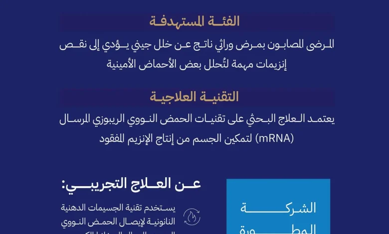 وتهدف الدراسة إلى استكشاف علاج بحثي مبتكر يعتمد على تقنيات الحمض النووي الريبوزي المرسال (mRNA) لعلاج أحد الأمراض الوراثية النادرة التي تؤثر في استقلاب الأحماض الأمينية.