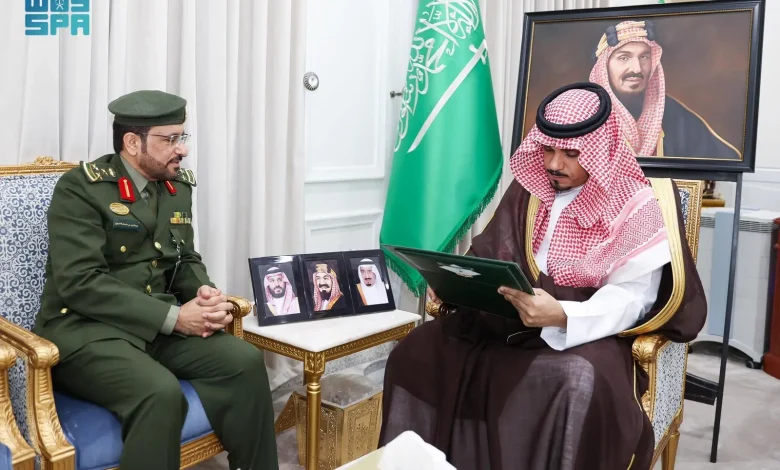 جاء ذلك خلال لقاء سموه في مكتبه اليوم، مدير إدارة جوازات المنطقة العميد عبدالمجيد بن سليمان الجربوع، الذي قدم لسموه إيجازًا عن استعدادات مشاركة جوازات المنطقة في استقبال الحجاج القادمين من الجمهورية اليمنية، عبر منفذ الوديعة الحدودي.