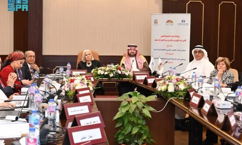 رأٍس صاحب السمو الملكي الأمير عبدالعزيز بن طلال بن عبدالعزيز رئيس المجلس العربي للطفولة والتنمية ورئيس مجلس إدارة برنامج الخليج العربي للتنمية “أجفند” اجتماع مجلس أمناء المجلس العربي للطفولة والتنمية في دورته الـ21، ومجلس إدارة الشبكة العربية للمنظمات الأهلية في دورتها الثالثة اليوم في القاهرة.