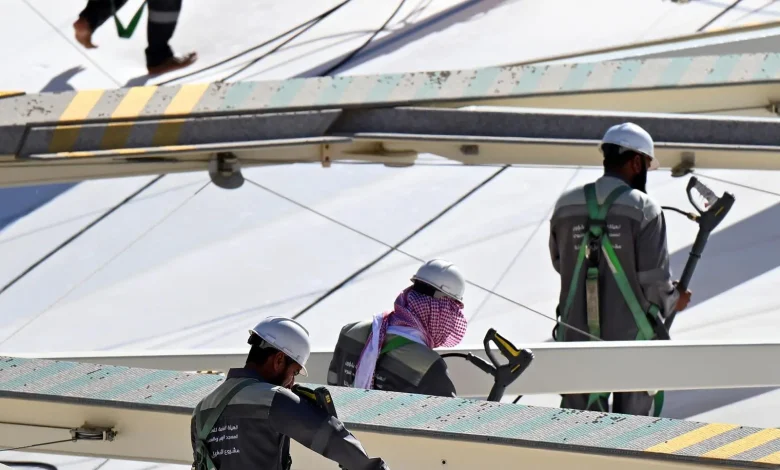 أعمال تنظيف دورية للمحافظة على نسيج وزخارف “مظلات المسجد النبوي” وكفاءة تشغيلها
