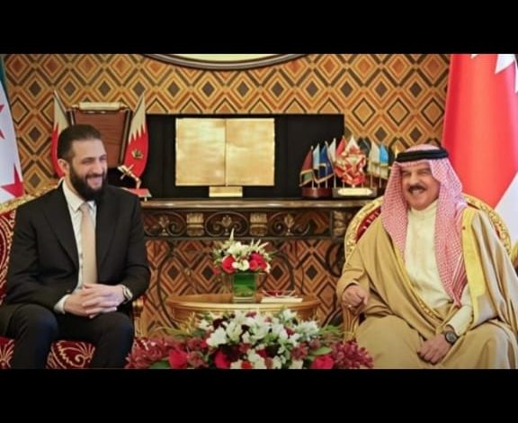 استقبل حضرة صاحب الجلالة الملك حمد بن عيسى آل خليفة ملك مملكة البحرين اليوم في قصر الصخير فخامة الرئيس أحمد الشرع رئيس الجمهورية العربية السورية والوفد المرافق، بحضور صاحب السمو الملكي الأمير سلمان بن حمد آل خليفة ولي العهد رئيس مجلس الوزراء حفظه الله، بمناسبة الزيارة التي يقوم بها فخامته إلى مملكة البحرين.