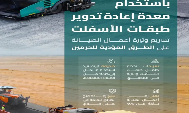 “هيئة الطرق”: استخدام معدة إعادة تدوير الأسفلت على طرق الحج لتسريع أعمال الصيانة بأكثر من 40% مقارنة بالطرق السابقة