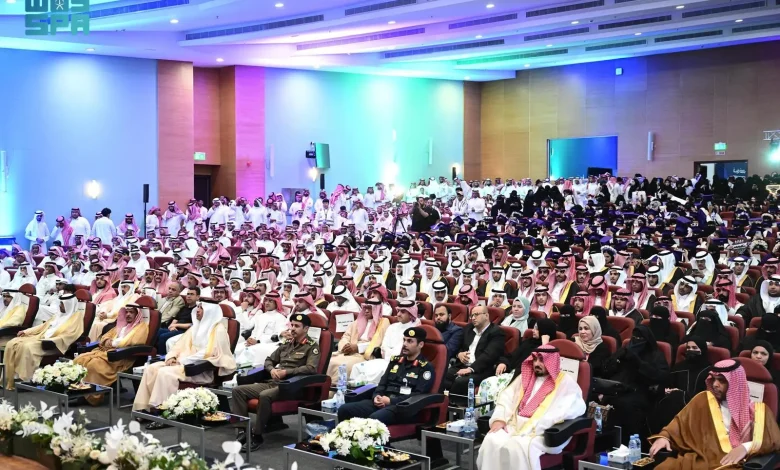 وشهد الحفل، الذي تجاوز عدد خريجيه 500 طالب وطالبة في مختلف التخصصات، فقرات متنوعة بدأت بالسلام الملكي ومسيرة الخريجين، ثم تلاوة من القرآن الكريم، أعقبتها كلمة الخريجين وقصيدة شعرية، إضافة إلى عرض مرئي تعريفي عن مشروع الحرم الجامعي الجديد.