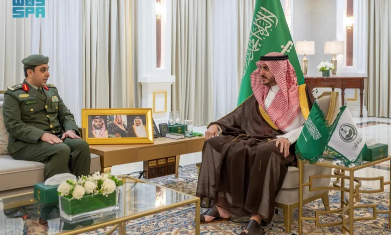 استقبل صاحب السمو الملكي الأمير فيصل بن نواف بن عبدالعزيز أمير منطقة الجوف، اليوم بمكتبه، مدير جوازات المنطقة المكلف، العميد خالد بن عطيه اللهيبي.