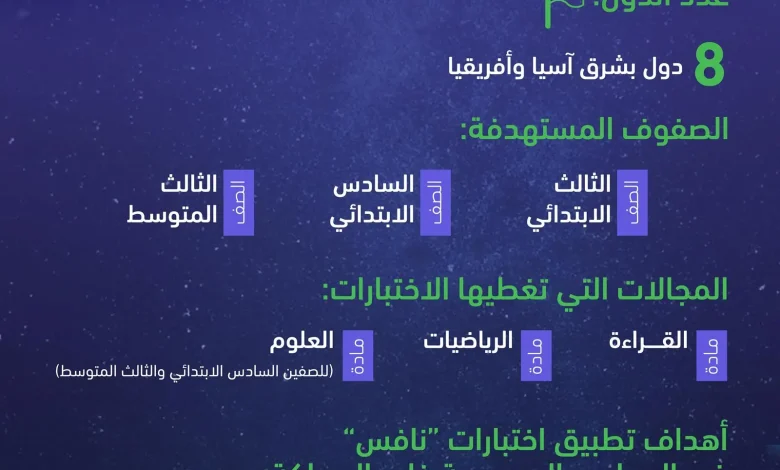 وتستهدف الاختبارات مجالي القراءة والرياضيات في الصف الثالث الابتدائي، ومجالات الرياضيات والقراءة والعلوم في الصفين السادس الابتدائي والثالث المتوسط، حيث تكتسب هذه الاختبارات أهمية عالية، إذ توظَّف نتائجها لقياس أهم مجالات تقويم الأداء المدرسي، وهو مجال نواتج التعلم، وتربط بتقويم أداء المدارس السعودية الموجودة خارج المملكة، التي يمكن من خلالها التعرّف على مستوى تعلّم الطلاب وتحصيلهم في القراءة، والعلوم، والرياضيات، وتحديد العوامل المؤثرة في ذلك، وتُنفذ وفق الأدوار التكاملية والتنسيق المتواصل بين وزارة التعليم والهيئة؛ للإسهام في تحقيق مستهدفات رؤية السعودية 2030، وبرنامج تنمية القدرات البشرية.