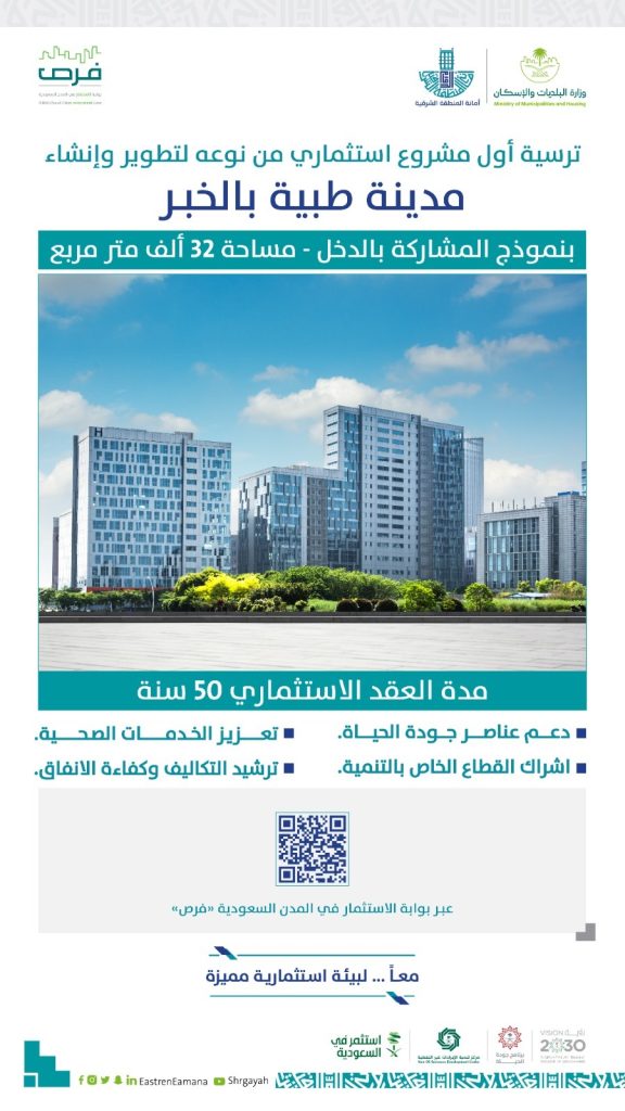 أمانة الشرقية ترسي المشروع الاستثماري لتطوير وإنشاء مدينة طبية في الخبر على مساحة تتجاوز 32 ألف م2
