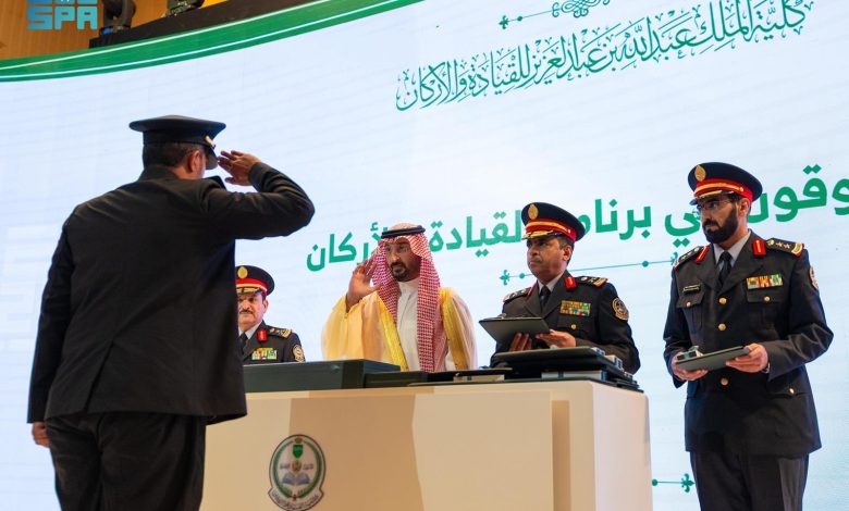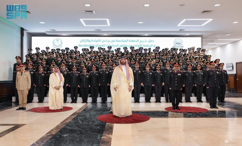 وزير الحرس الوطني يرعى حفل تخريج الدفعة السادسة من برنامج القيادة والأركان والدفعة الأولى من برنامج الدراسات العسكرية المتقدمة ويدشّن برنامج الحرب