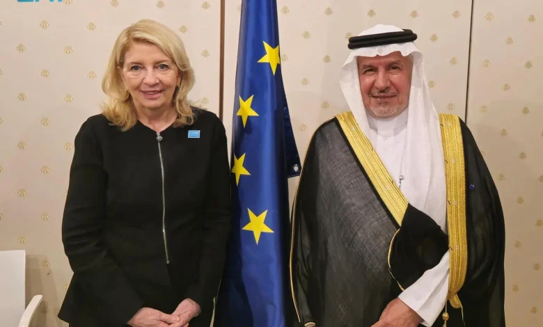 التقى معالي المستشار بالديوان الملكي المشرف العام على مركز الملك سلمان للإغاثة والأعمال الإنسانية الدكتور عبدالله بن عبدالعزيز الربيعة أمس، المدير التنفيذي لمنظمة الأمم المتحدة للطفولة “اليونيسيف” كاثرين راسل، بحضور سفيرة خادم الحرمين الشريفين لدى الاتحاد الأوروبي هيفاء بنت عبدالرحمن الجديع، وذلك على هامش المنتدى الإنساني الأوروبي في العاصمة البلجيكية بروكسل.