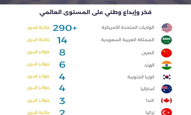 وحصد المنتخب (14) جائزة كبرى و(9) جوائز خاصة، لتحافظ المملكة على مركزها الثاني عالميًا بعد الولايات المتحدة الأمريكية من حيث عدد الجوائز الكبرى، للعام الثاني على التوالي، في تأكيد على ريادتها للمشهد العلمي العالمي في هذا المحفل الدولي، الذي يُعد الأكبر من نوعه لطلبة ما قبل الجامعة.