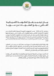 أعربت سوريا اليوم عن ترحيبها بالقرار الصادر عن الحكومة الأمريكية القاضي برفع العقوبات التي فرضت على سوريا لسنوات طويلة، والذي ينص على إصدار إعفاء من العقوبات الإلزامية.