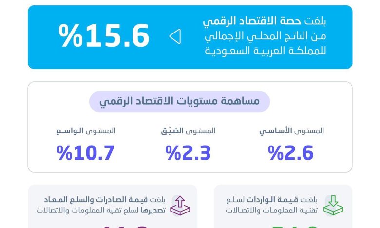 “هيئة الإحصاء”: ارتفاع حصة الاقتصاد الرقمي 15.6% من الناتج المحلي الإجمالي