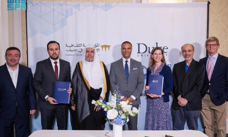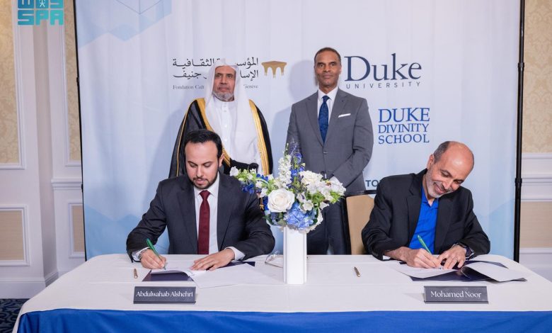 عقب ذلك، شهِدَ معاليه توقيعَ مذكّرة تفاهُم لتوسيع الشراكة بين “المؤسسة الثقافية الإسلامية بجنيف”، و”كلّية ديفنتي في جامعة ديوك”؛ بهدف تعزيز مجالات التعاوُن والعمل بين المؤسستين العريقتين في المجالات ذات الاهتمام المُشترَك، وتفعيل دور القيادات الدينيّة والأكاديميّة لمعالجة القضايا المُلِحّة في مجتمعاتهم، ومِنْ ذلك تعزيز الشراكة في مجالات حماية البيئة والتغيُّر المناخي.