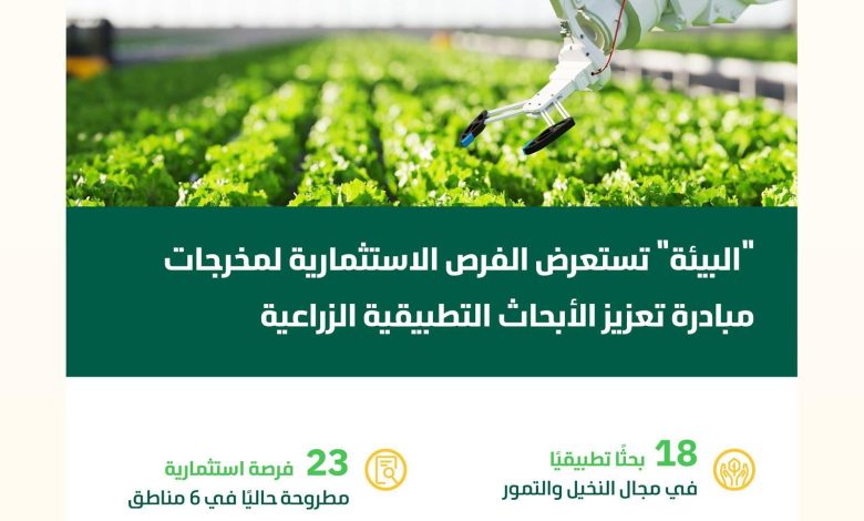“البيئة”: (64) فرصة استثمارية زراعية واعدة في (8) مناطق ضمن مبادرة تعزيز الأبحاث التطبيقية الزراعية