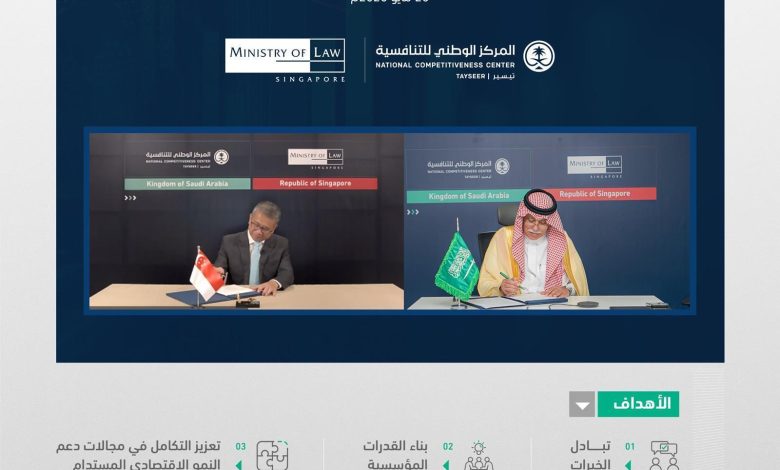 المركز الوطني للتنافسية ووزارة القانون السنغافورية يوقعان مذكرة تعاون لتعزيز البيئة القانونية والتنظيمية