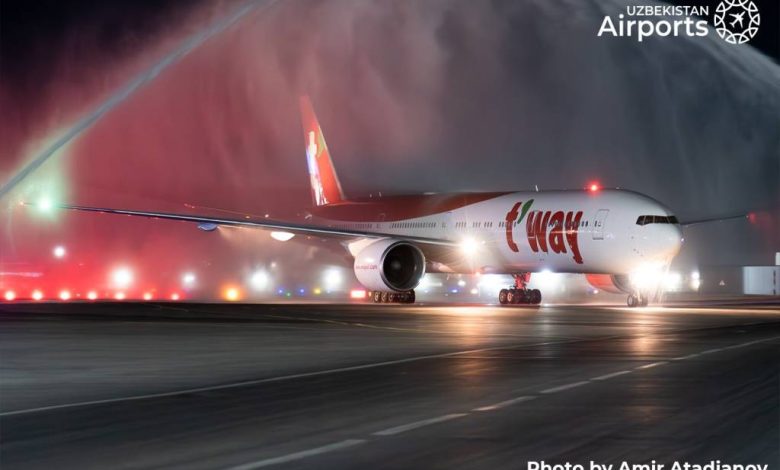 الهبوط الأول لطائرة شركة الخطوط الجوية “T’way Air” في طشقند