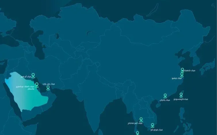 وتعمل خدمة الشحن الجديدة على ربط ميناء الملك عبدالعزيز بالدمام بـ9 موانئ إقليمية وعالمية، تشمل ميناء كلانج الماليزي، ولايم تشابانج في تايلند، وفونغ تاو في فيتنام، وكاوهسيونغ في تايوان، ويانتيان، ونينغبو، وشنغهاي بالصين، وأم قصر بالعراق، وجبل علي في الإمارات، بطاقة استيعابية تصل إلى 9,466 حاوية قياسية.