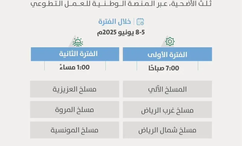 أمانة منطقة الرياض تفتح باب التطوع ضمن مبادرة “ثلث الأضحية” لخدمة المستفيدين في عيد الأضحى