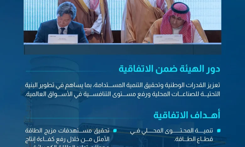 وتأتي هذه الاتفاقية ضمن جهود المنظومة الحكومية المستمرة في تنمية المحتوى المحلي في قطاع الطاقة، بهدف تعزيز سلاسل الإمداد للمنتجات المستهدفة، ورفع كفاءة إنتاج محطات توليد الطاقة الكهربائية، من خلال استحداث صناعات جديدة تسهم في بناء قاعدة صناعية مستدامة داخل المملكة.