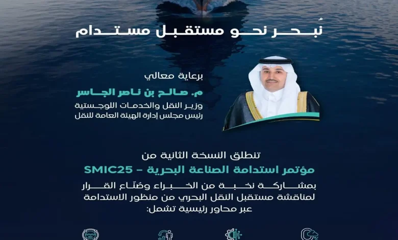 أعلنت الهيئة العامة للنقل عن إقامة المؤتمر الثاني لاستدامة الصناعة البحرية (SMIC25) تحت شعار “نبحر نحو مستقبل مستدام”، في فندق الريتز كارلتون بمدينة جدة، خلال الفترة من 3 إلى 4 سبتمبر 2025، برعاية معالي وزير النقل والخدمات اللوجستية رئيس مجلس إدارة الهيئة العامة للنقل المهندس صالح بن ناصر الجاسر.